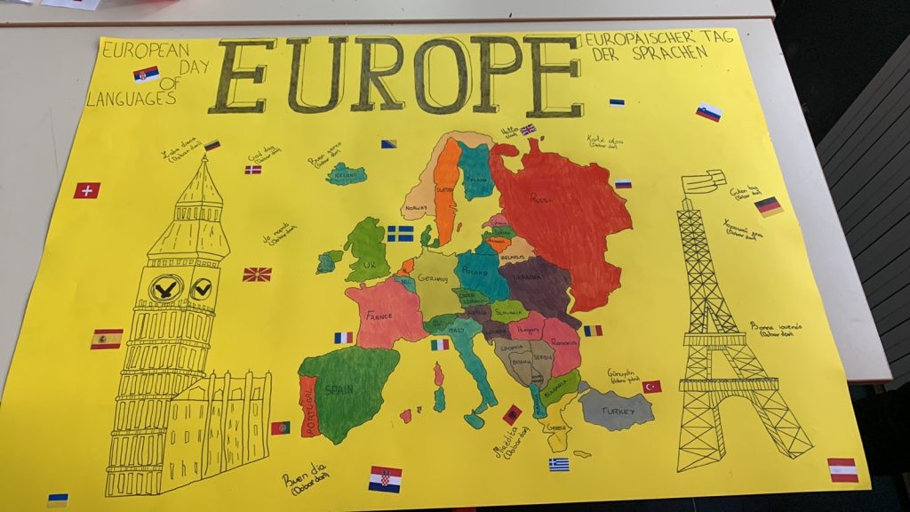Ученици виших разреда, заједно са својим наставницама њемачког и енглеског језика, Радмилом Вујић и Санелом Дудаковић су израдом паноа и излагањем у холу школе дали свој допринос обиљежавању 26. септембра – Европског дана језика.